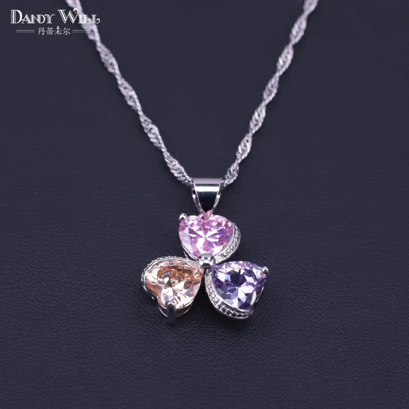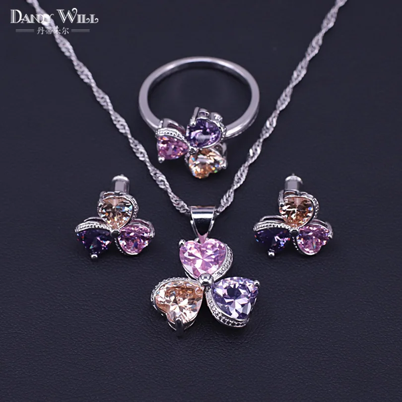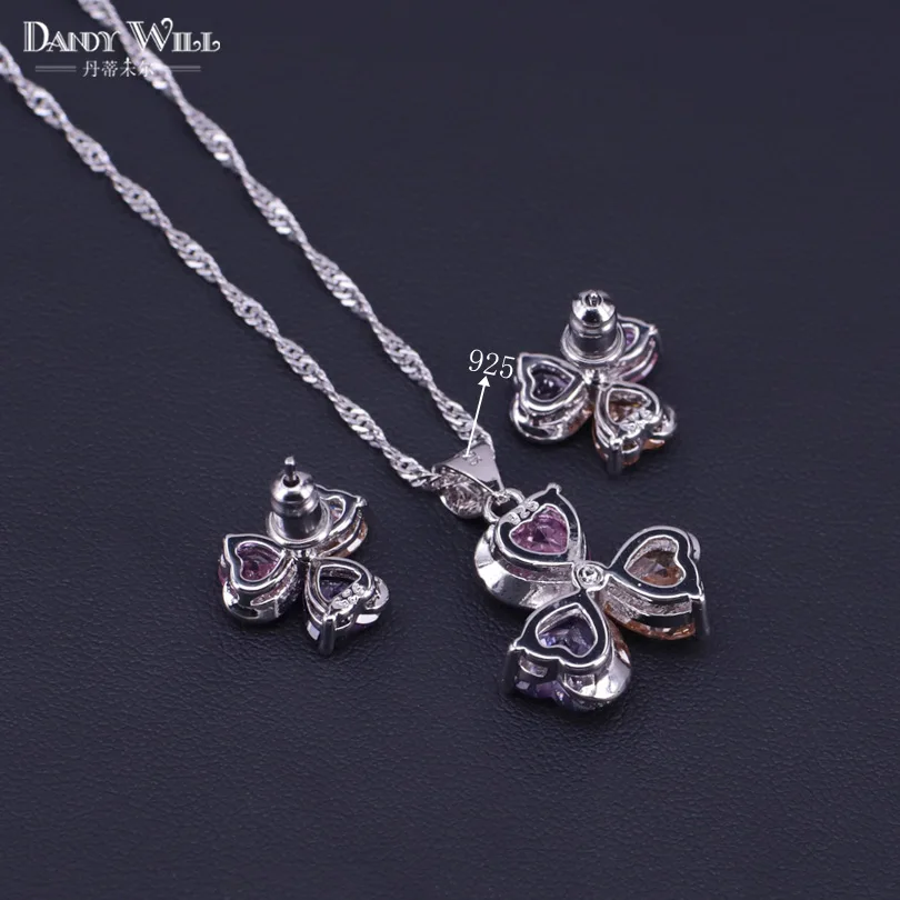 Best Lovely Flower Women Girls Party Crystal Jewelry Set 925 Sterling Silver Necklace Earrings Set Holid
