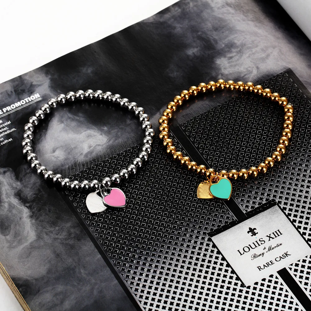 Best New Fashion Women Party Jewelry Lover Heart Pendant Stainless Steel Elastic rope Bracelet Bead Chai