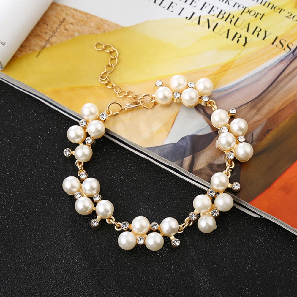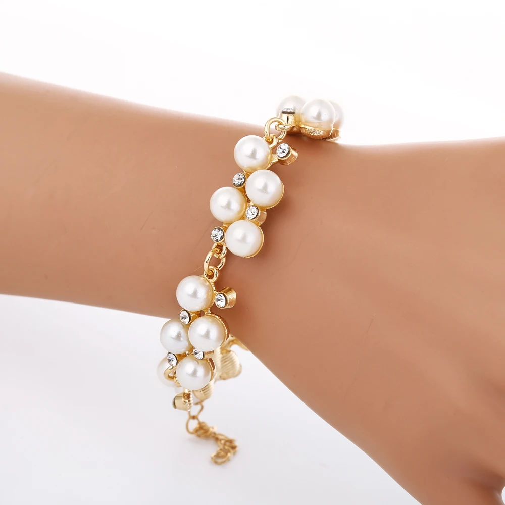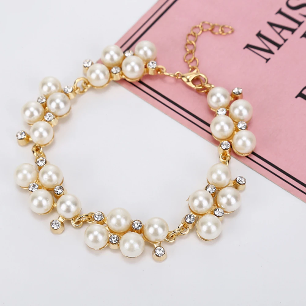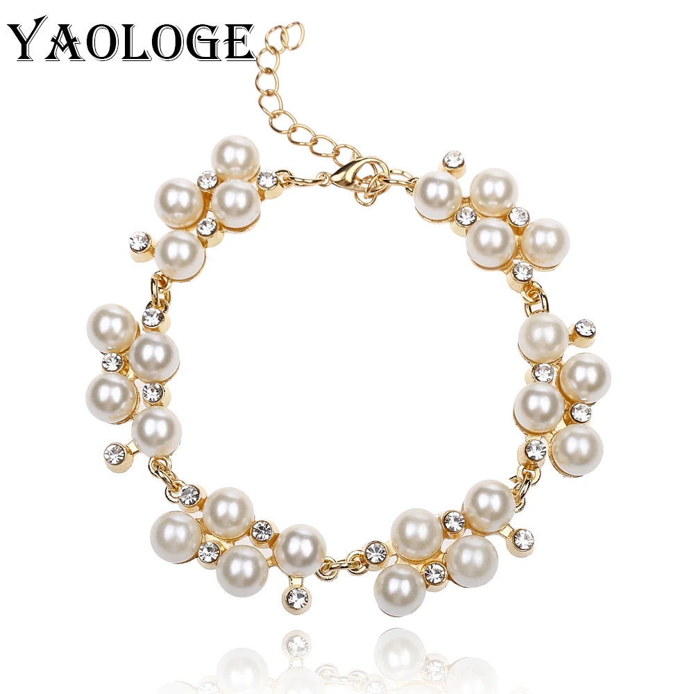 Best YAOLOGE Metal Bracelet Hand Inlaid Imitation Pearls Rhinestone Fashion Simple Bracelet Wedding Enga